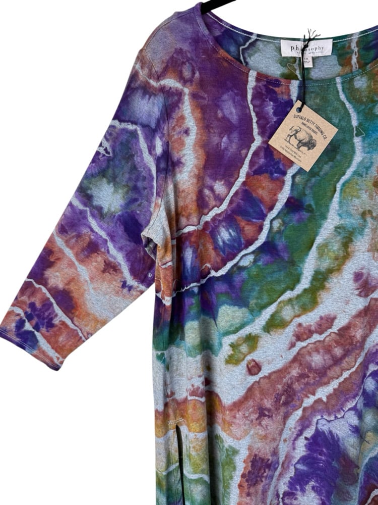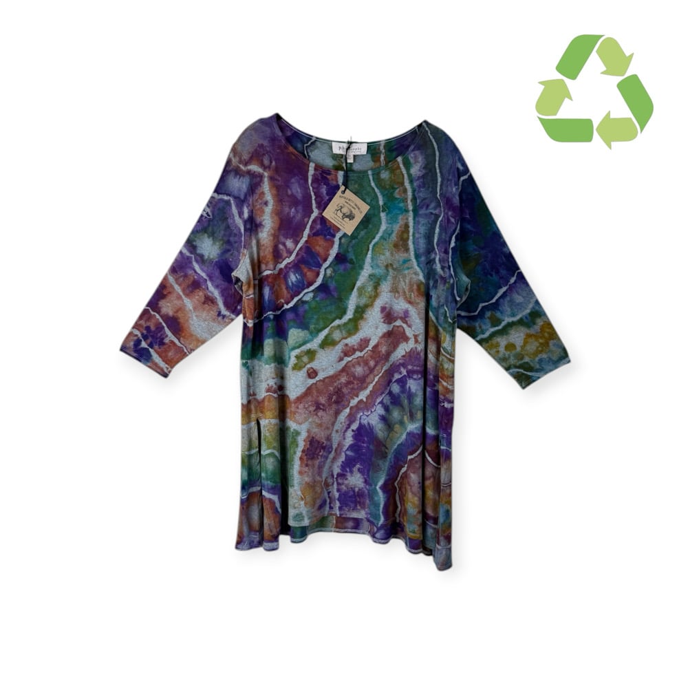 β»οΈ UPCYCLED 1X Plus Jersey Knit Tunic Top in Earthy Geode Ice Dye