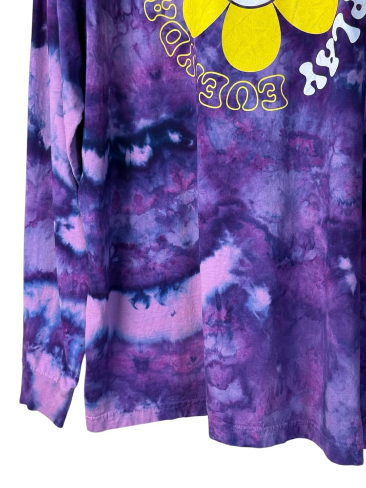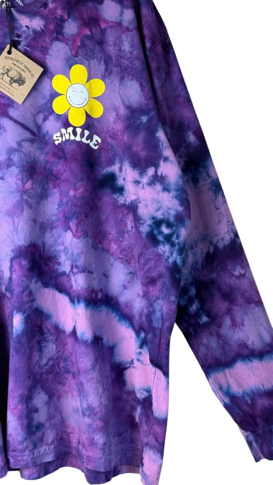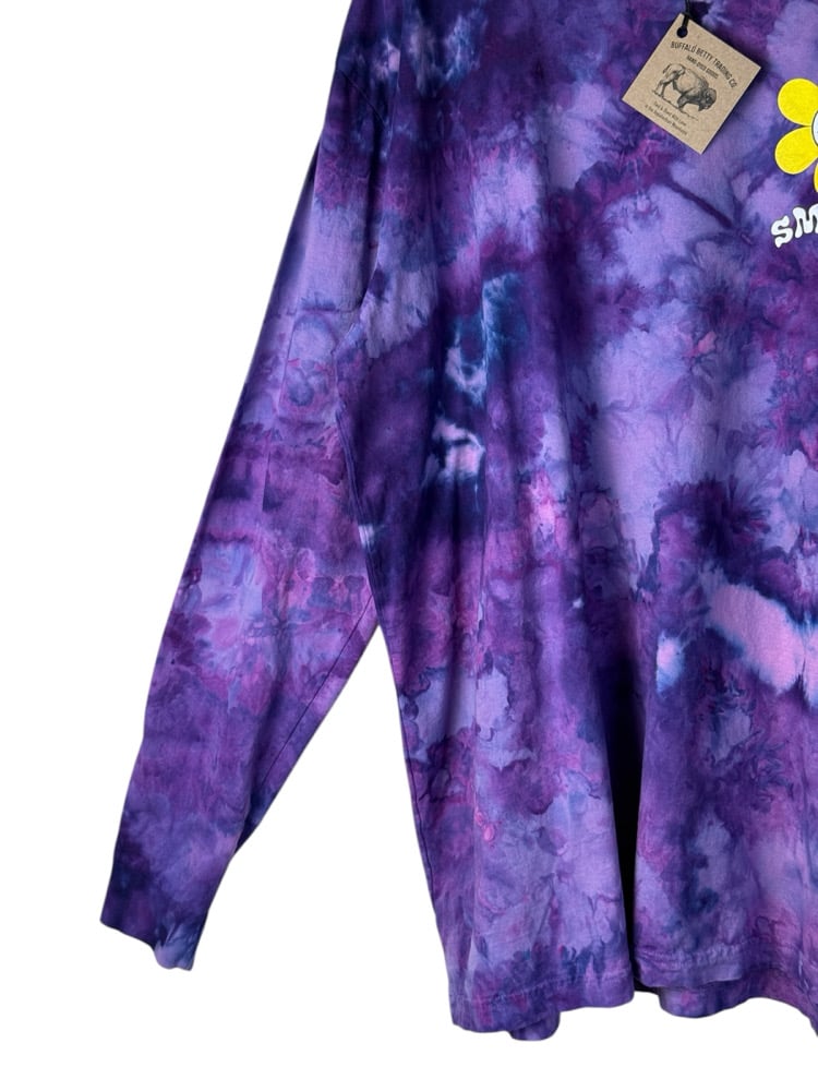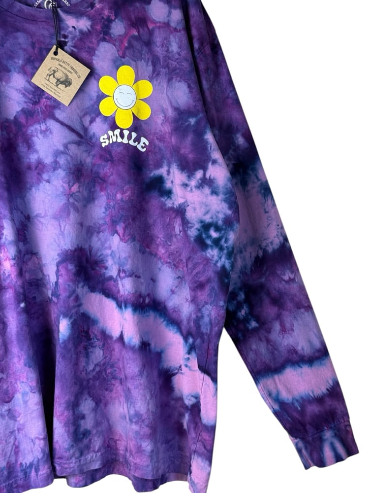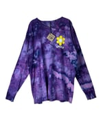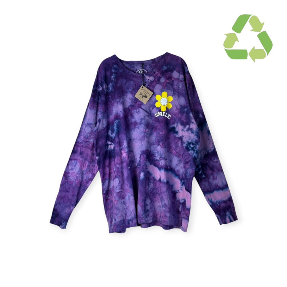 β»οΈ UPCYCLED 2X PLUS 100% Cotton Smiley Long Sleeve Graphic Tee in Purple Haze Ice Dye