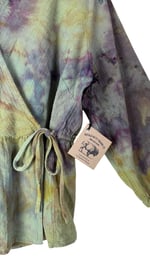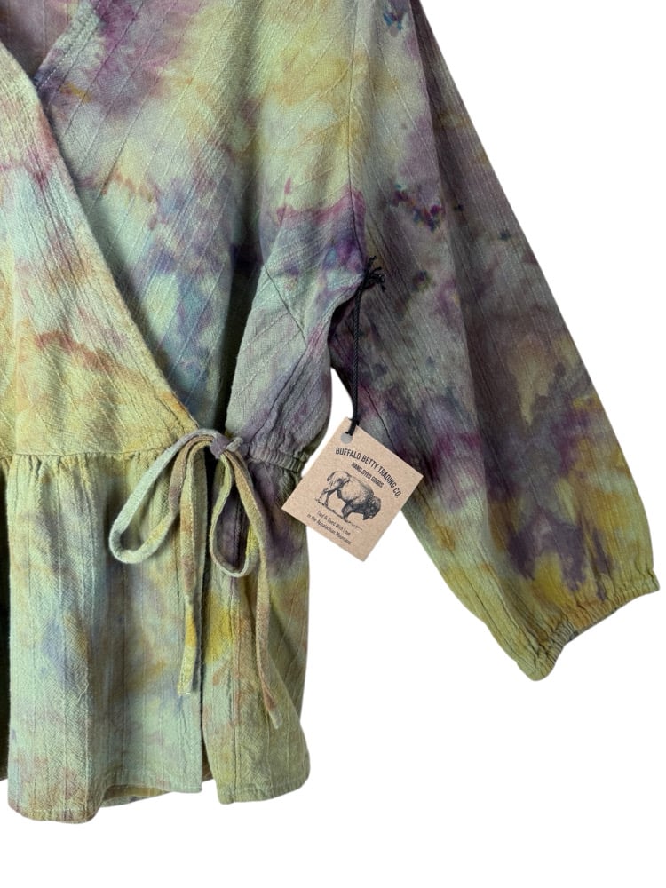 β»οΈ UPCYCLED L 100% Cotton Overdyed Wrap Top in Muted Earthy Ice Dye