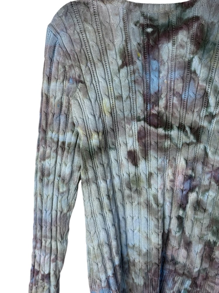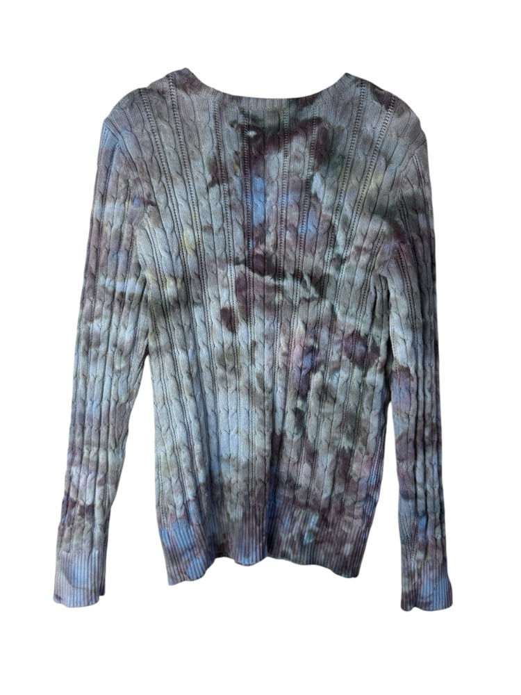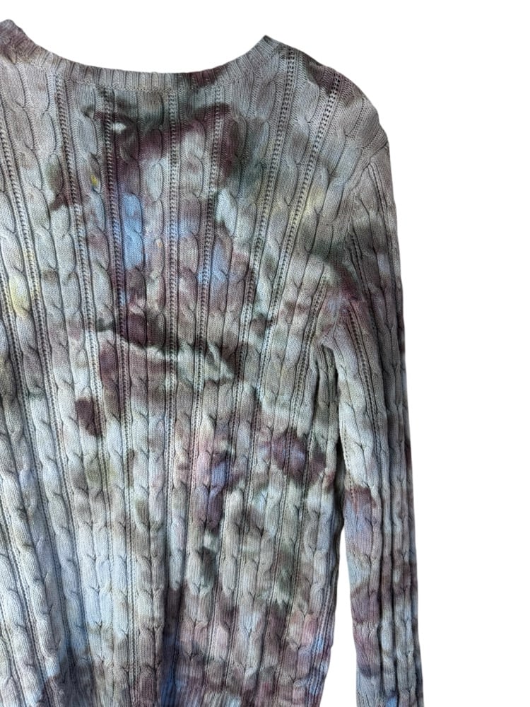 β»οΈ UPCYCLED L Cable Knit Cotton Blend Sweater in Stormy Skies Ice Dye