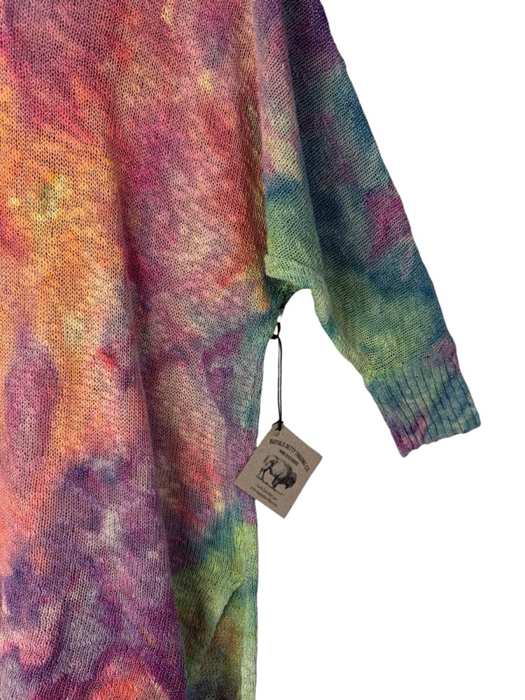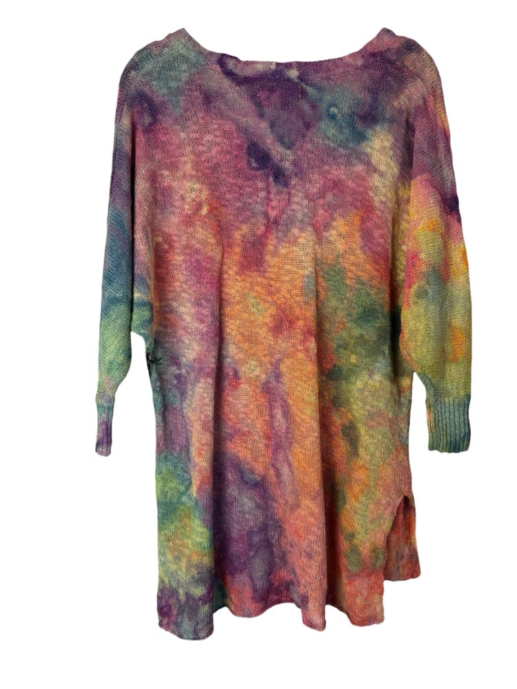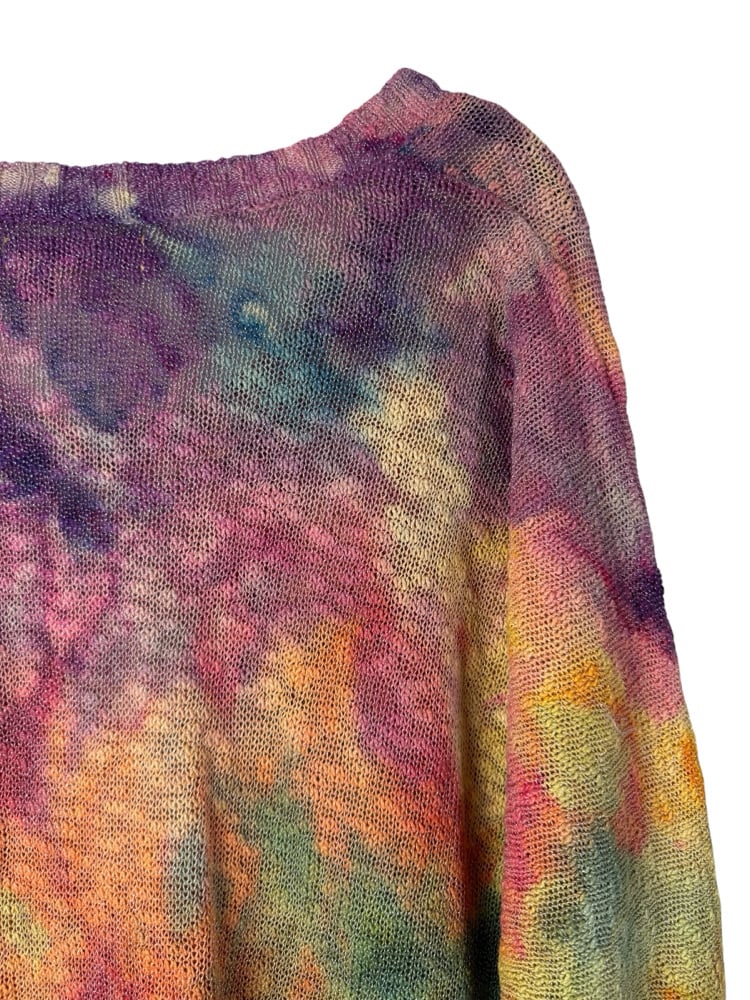β»οΈ UPCYCLED XS/S Cotton Blend Spring Sweater in Bright Overdye Ice Dye