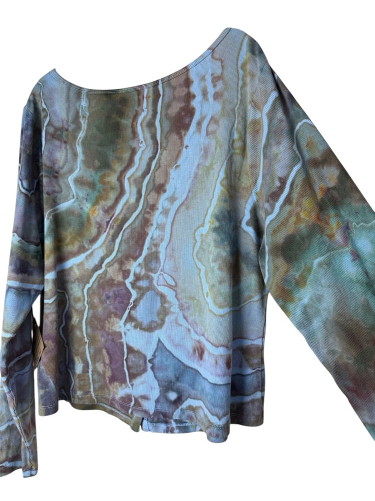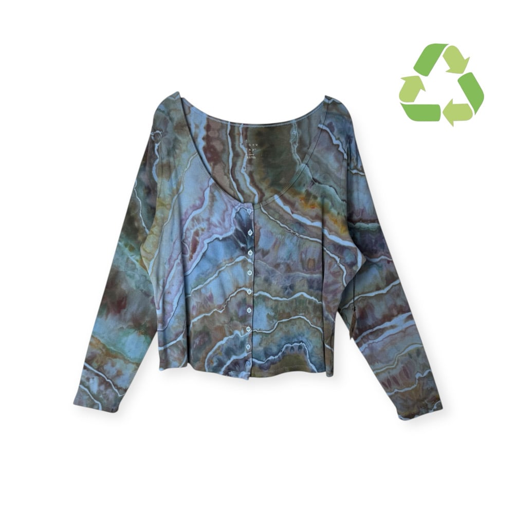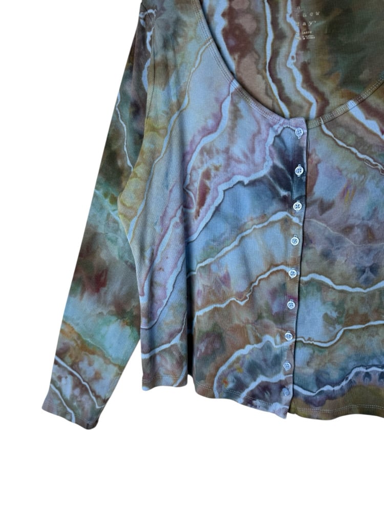 β»οΈ UPCYCLED XXL Rib Knit Button Top / Cardigan in Earthy Geode Ice Dye