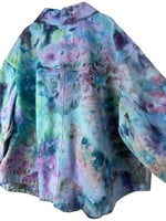 2X PLUS 100% Cotton Oversized Chore Coat in Mermaid Watercolor Ice Dye