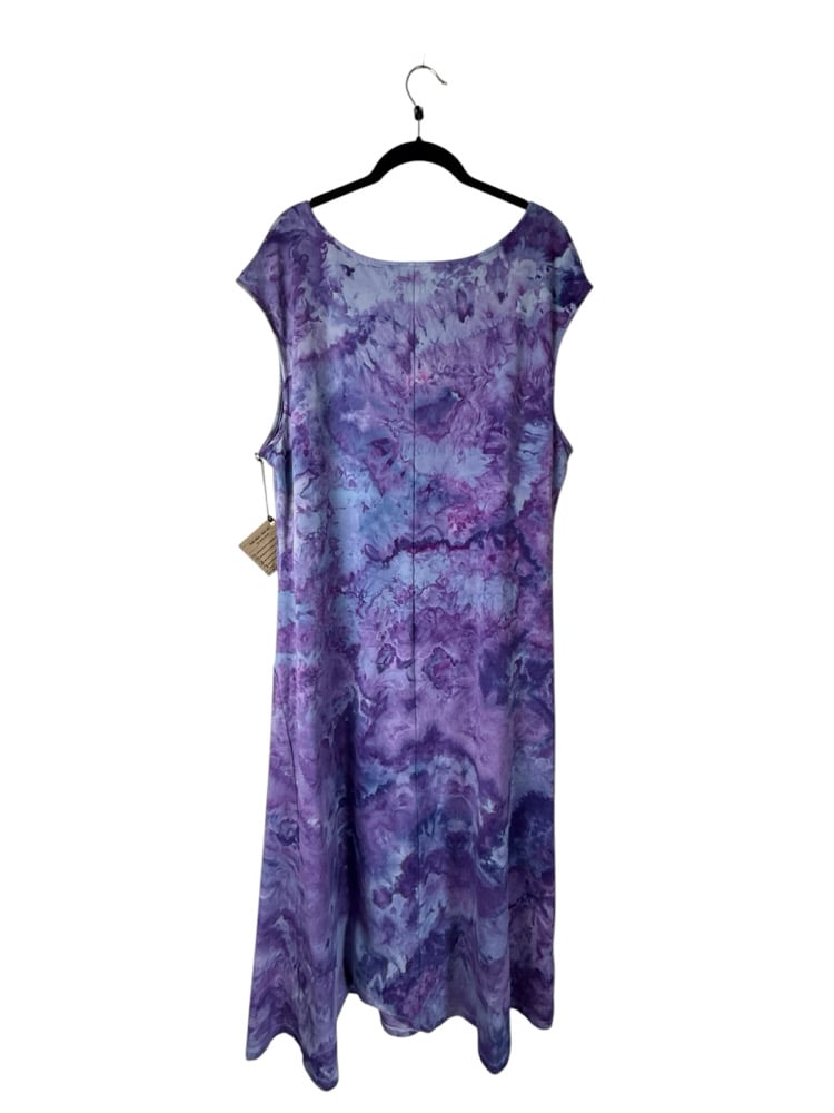 2X PLUS Stretch Knit Fit and Flare Midi Dress in Purple Haze Ice Dye