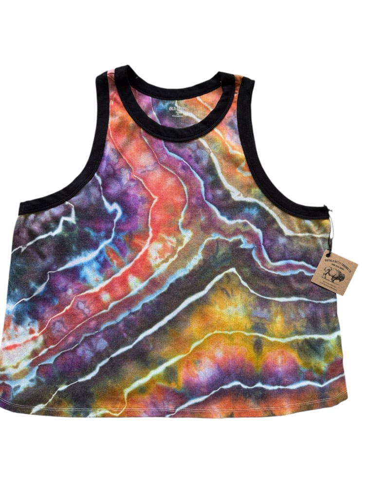 4X PLUS Ladies Fitted Knit Contrast Tank in Bold Geode Ice Dye