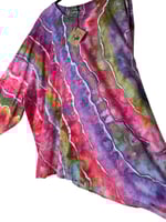 Each Buffalo Betty Trading Co. piece is completely one-of-a-kind. I dye everything by hand in small batches in my tiny home studio in the heart of the Appalachian Mountains. I mix the colors I use by hand and often create unique custom colors that can’t be reproduced. I utilize both traditional and modern methods and tie-dye techniques such as shibori and rain-dyeing.