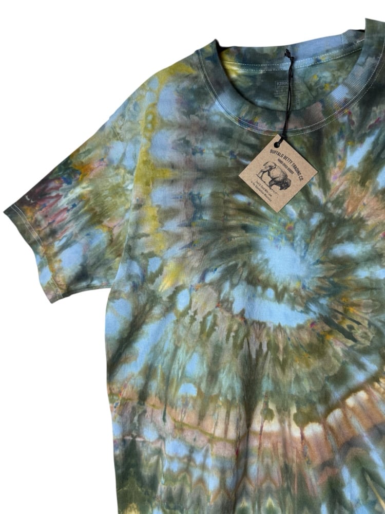 M Adult Combed Cotton Tee in Forest Spiral Ice Dye