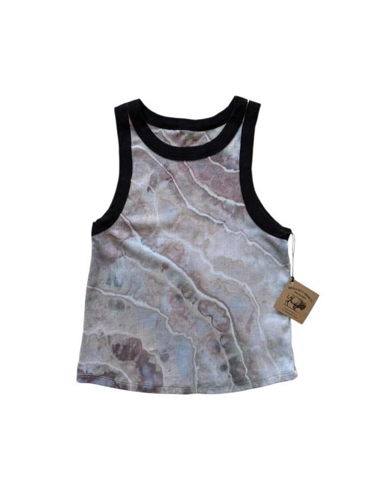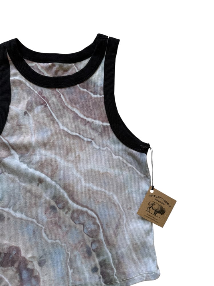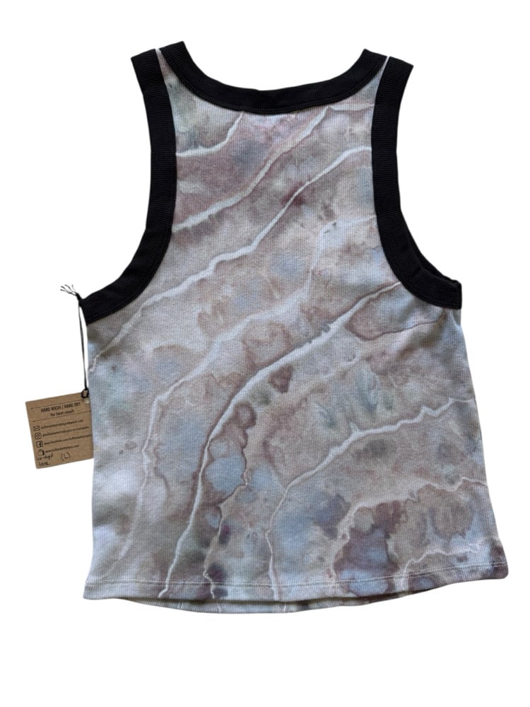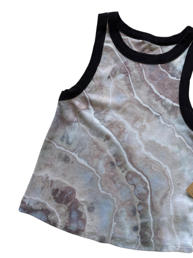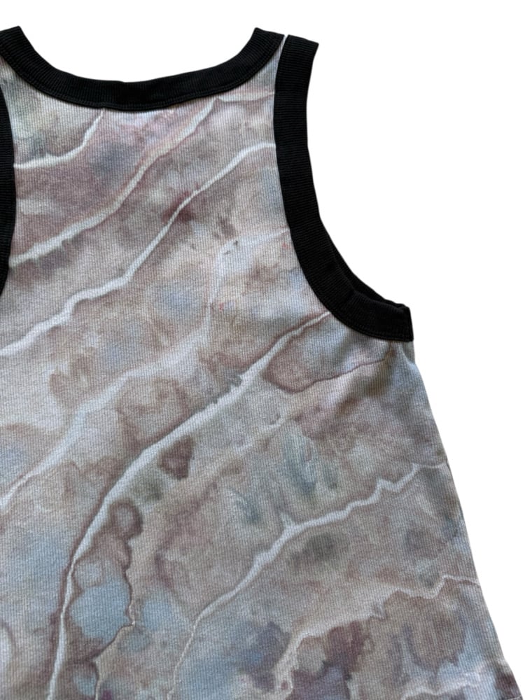 L Ladies Fitted Knit Contrast Tank in Muted Stone Geode Ice Dye