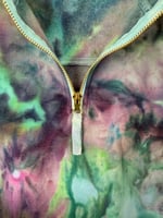 Each Buffalo Betty Trading Co. piece is completely one-of-a-kind. I dye everything by hand in small batches in my tiny home studio in the heart of the Appalachian Mountains. I mix the colors I use by hand and often create unique custom colors that can’t be reproduced. I utilize both traditional and modern methods and tie-dye techniques such as shibori and rain-dyeing.