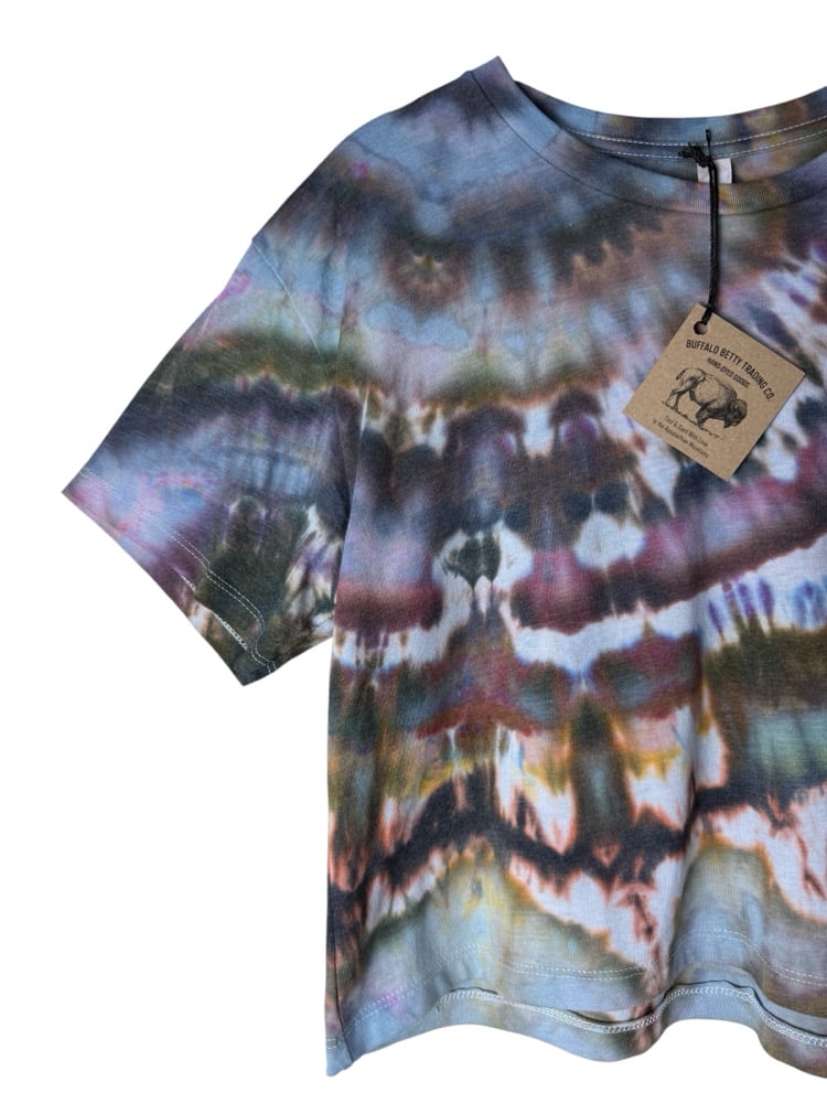 Each Buffalo Betty Trading Co. piece is completely one-of-a-kind. I dye everything by hand in small batches in my tiny home studio in the heart of the Appalachian Mountains. I mix the colors I use by hand and often create unique custom colors that can’t be reproduced. I utilize both traditional and modern methods and tie-dye techniques such as shibori and rain-dyeing