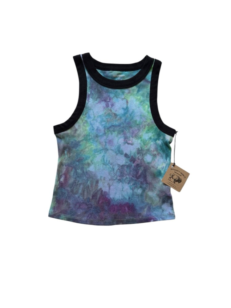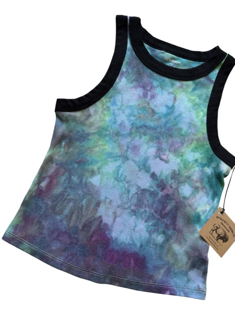 M Ladies Fitted Knit Contrast Tank in Mermaid Ice Dye