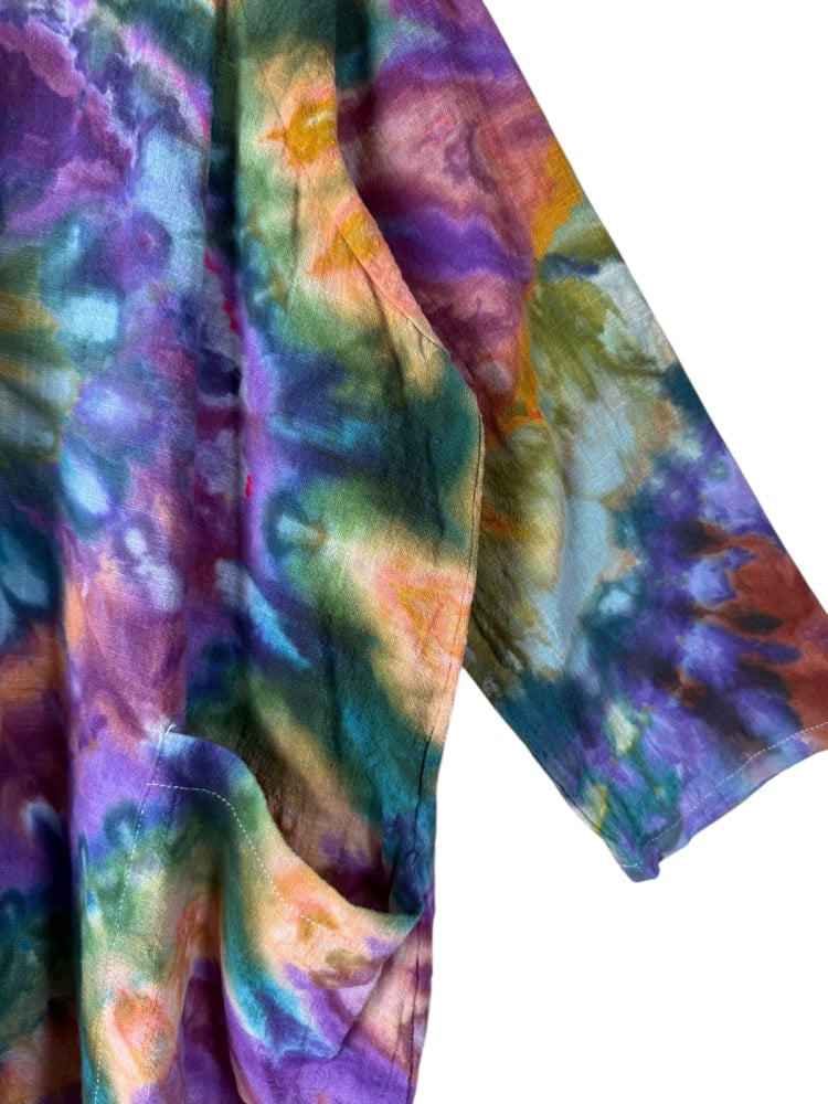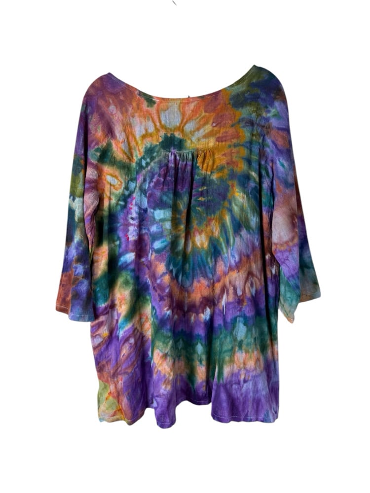 S 100% Cotton Forager Top in Earthy Spiral Rainbow Ice Dye