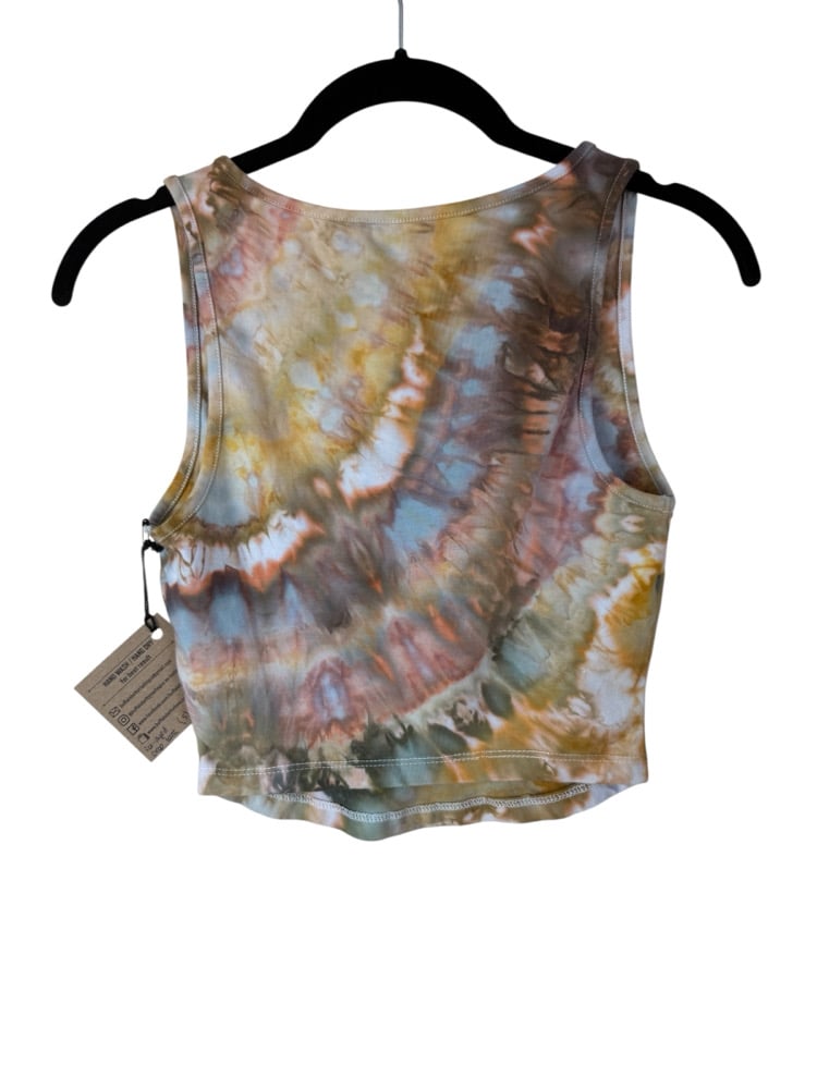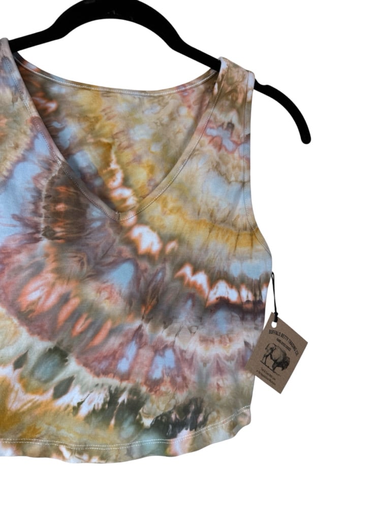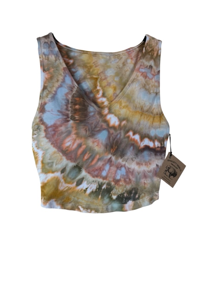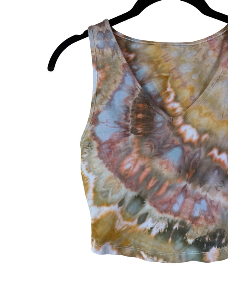 S Crop Fitted V Tank in Autumn Agate Ice Dye