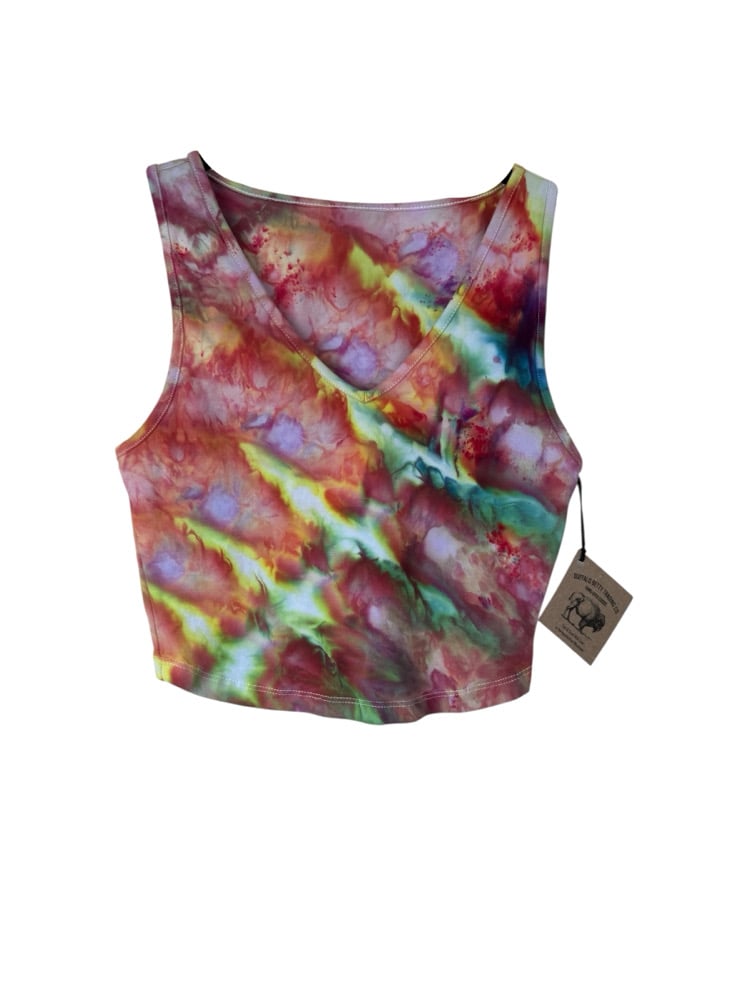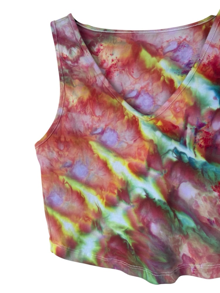 S Crop Fitted V Tank in Bold Tones Ice Dye
