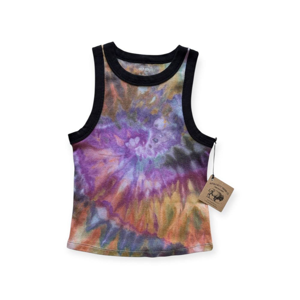 S Ladies Fitted Knit Contrast Tank in Spiral Ice Dye
