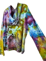 - Wash cold separately or with like/dark colors the first few washes as dye transfer is always possible with hand-dyed garments. Hang to dry.