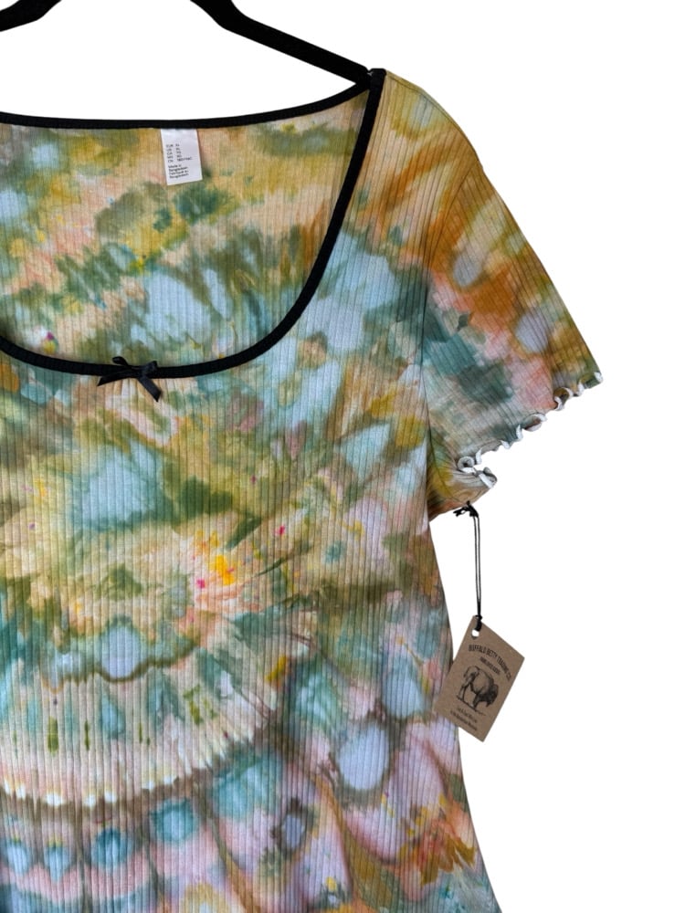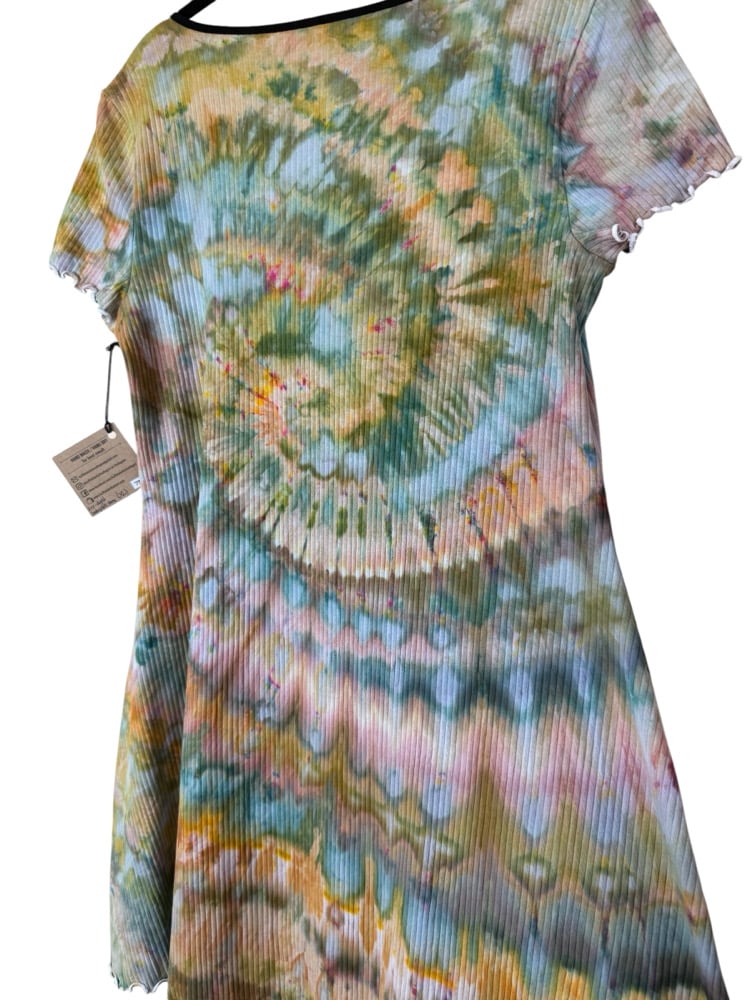 XL 90's Babydoll Mini Dress in Earthy Spiral Ice Dye
