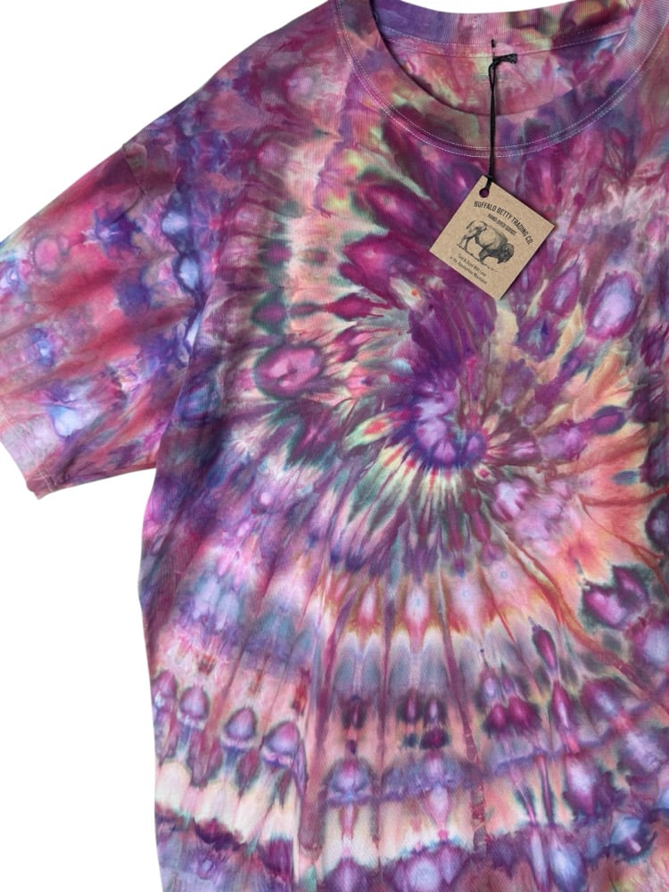 Each Buffalo Betty Trading Co. piece is completely one-of-a-kind. I dye everything by hand in small batches in my tiny home studio in the heart of the Appalachian Mountains. I mix the colors I use by hand and often create unique custom colors that canβt be reproduced. I utilize both traditional and modern methods and tie-dye techniques such as shibori and rain-dyeing