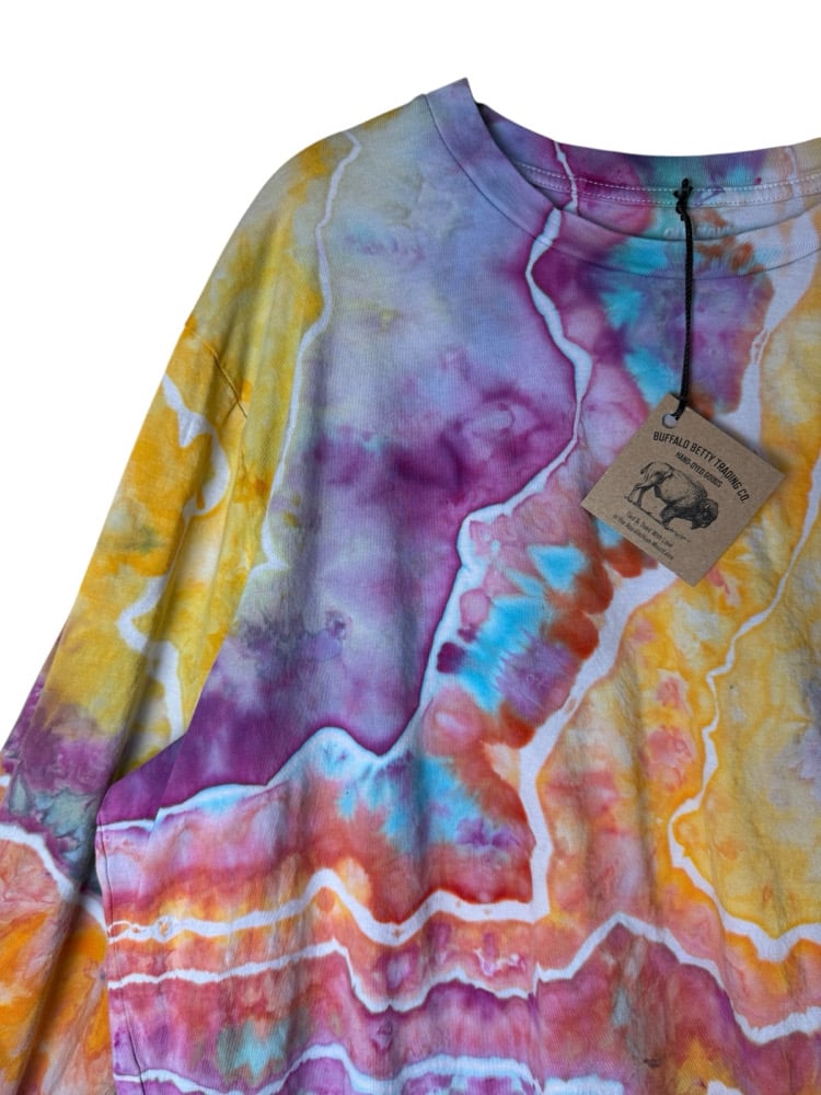 XL Unisex Adult Soft Long Sleeve Tee in Bright Geode Ice Dye