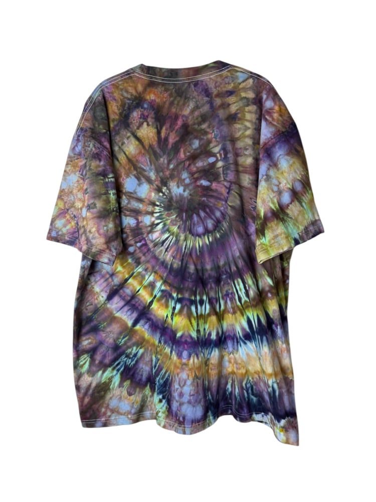 XXL Adult Combed Cotton Tee in Earthy Cool Spiral Ice Dye