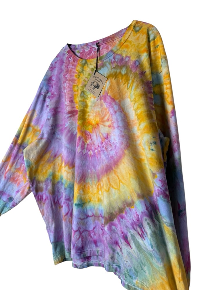 XXL Unisex Adult Soft Long Sleeve Tee in Soft Spiral Ice Dye